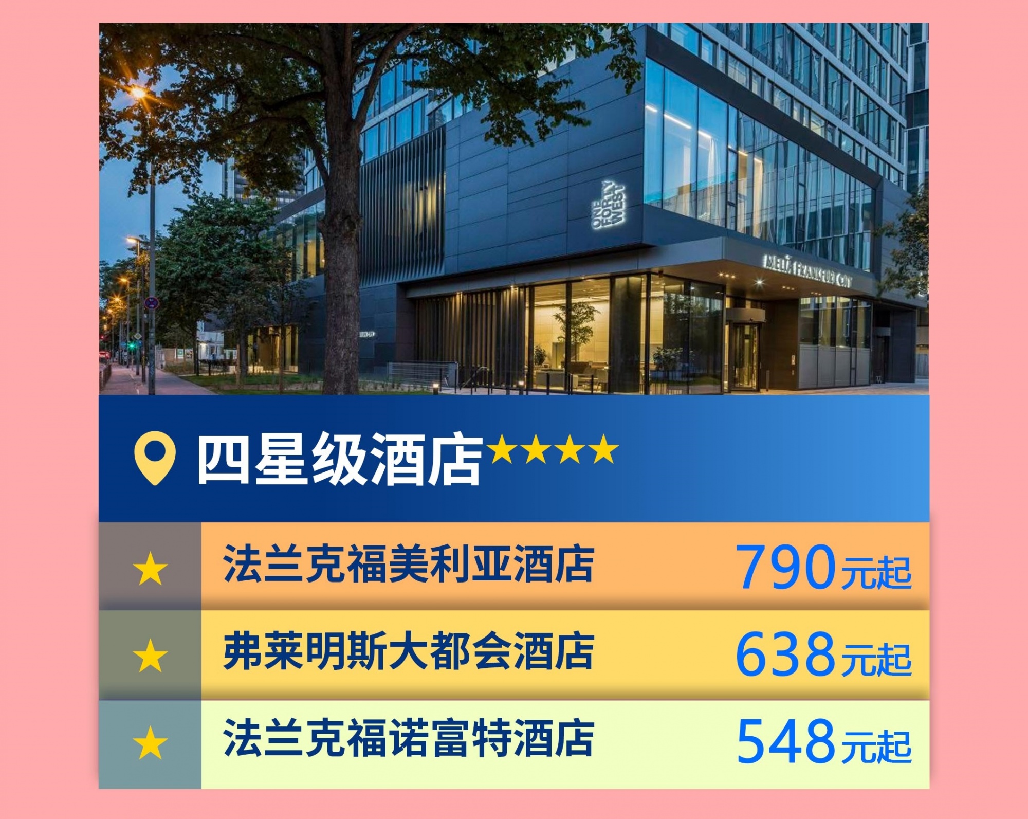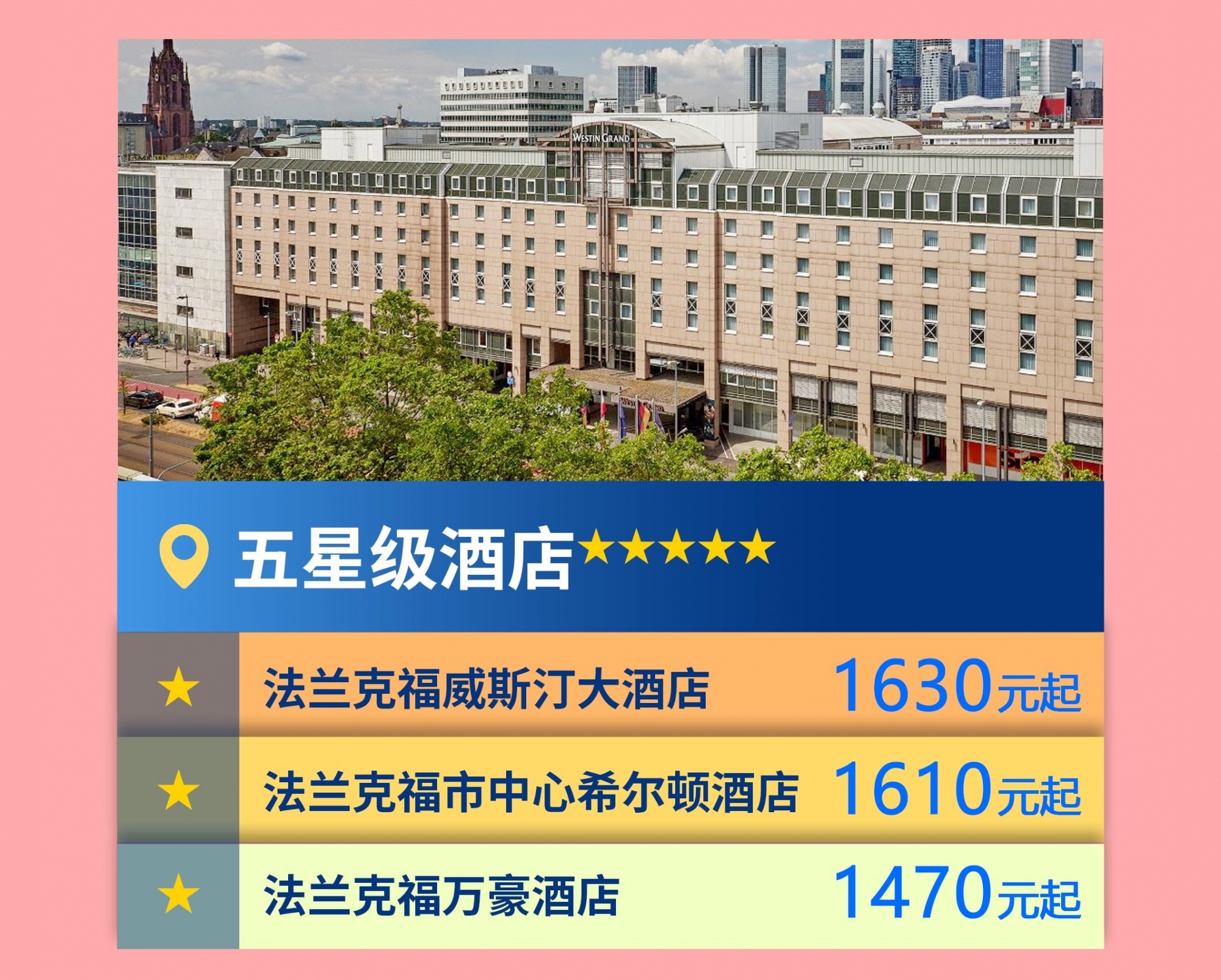 ⭐⭐⭐⭐⭐👉🏻法兰克福威斯汀大酒店👉🏻法兰克福市中心希尔顿酒店👉🏻法兰克福万豪酒店⭐⭐⭐⭐👉🏻法兰克福美利亚酒店👉🏻弗莱明斯大都会酒店👉🏻法兰克福诺富特酒店⭐⭐⭐👉🏻法兰克福展览馆优品迎酒店👉🏻法兰克福梅斯智选假日酒店👉🏻假日酒店-尼乌酒店